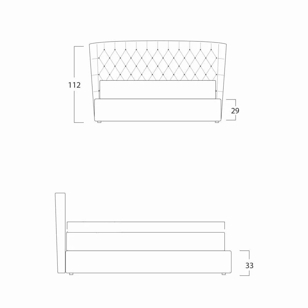 Het hoofdeinde is capitone, niet verwijderbaar. Alleen de bedovertrek is afneembaar. De structuur is van gebombeerd hout met een natuurlijke binnenafwerking, terwijl het net, in beukende stoomstroken, is bevestigd: metalen structuur en gebogen frame geschilderd met poeders, orthopedische latten bovenzijde.