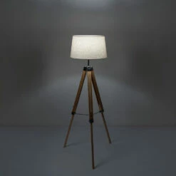 Vloerlamp Met 3-voetige Houten Voet En Canvas Lampenkap – Evette