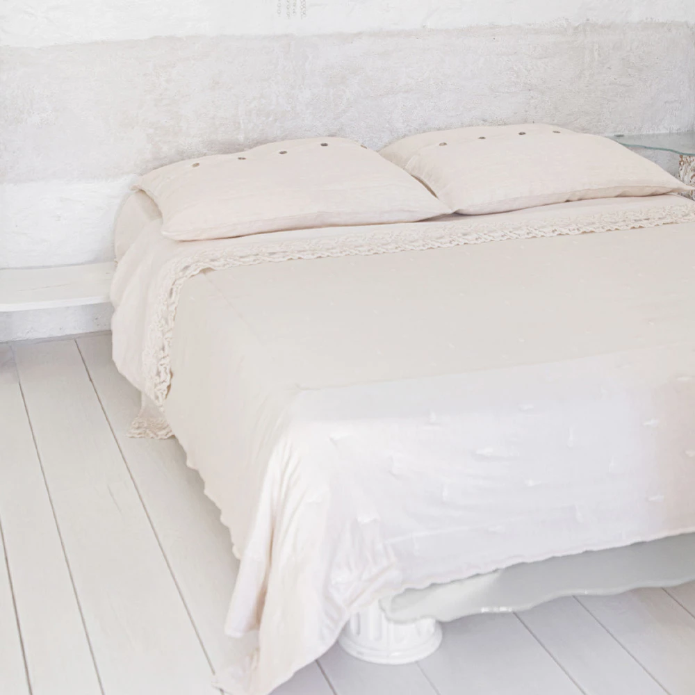 Zo ontstaat door de aandacht voor detail en een authentiek design dat verwijst naar de essentie van schoonheid, een authentiek en ambachtelijk product , van de hoogste kwaliteit voor de geselecteerde grondstoffen, zoals het puurste linnen en het zachtste katoen. De natuurlijke imperfectie van het materiaal duidt dus op de waarde van eenvoud , omsloten door een elegant en delicaat vakmanschap voor een sublieme en suggestieve zintuiglijke ervaring.