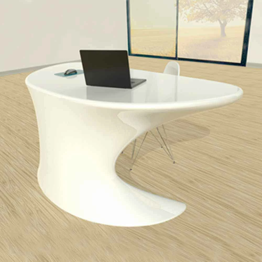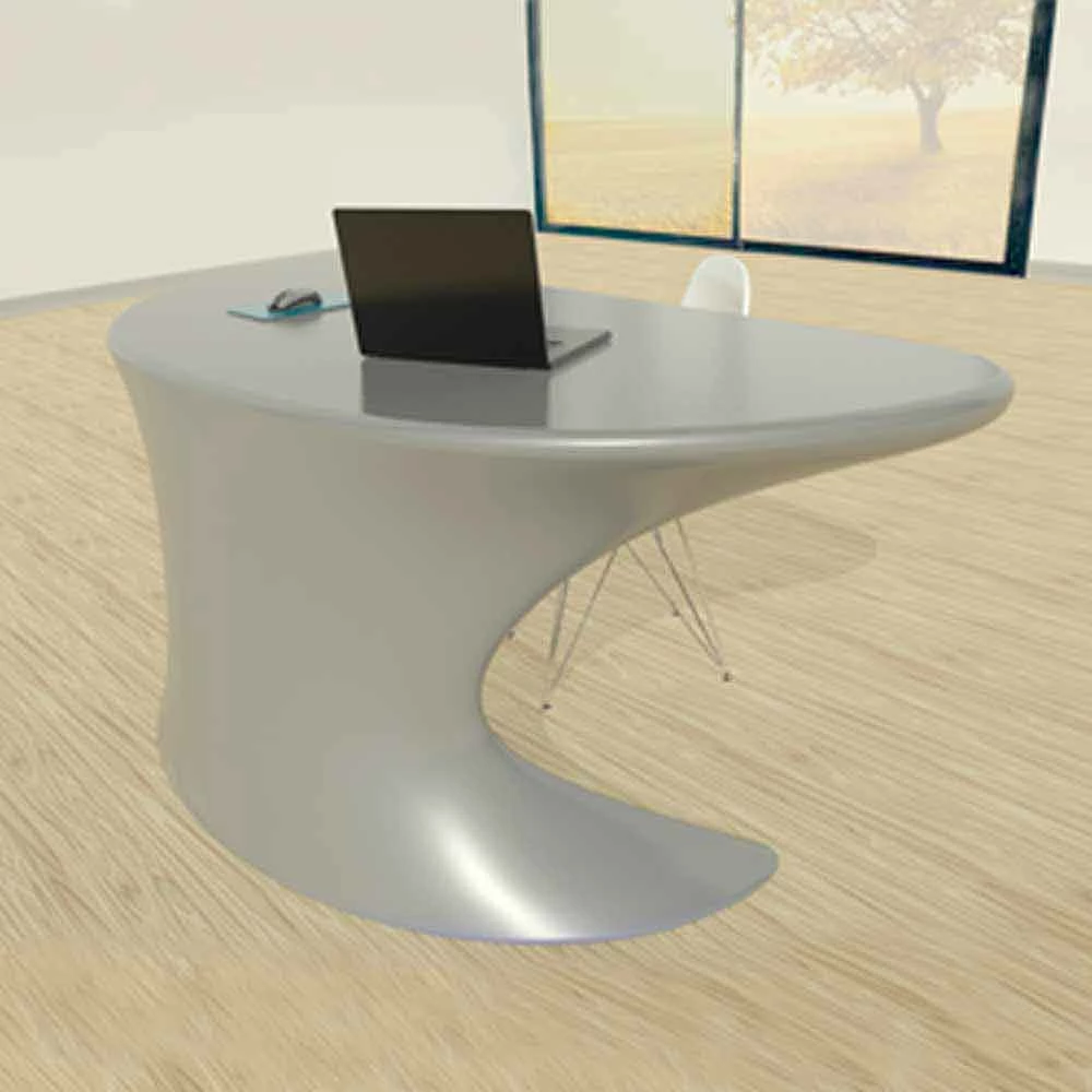 Zachte en golvende lijnen zijn de onderscheidende kenmerken van dit bureau met een boeiende en beslissende vorm. Een omhullend ontwerp en een groot werkblad ten dienste van diegenen die in alle comfort willen werken zonder in te boeten aan stijl en elegantie.