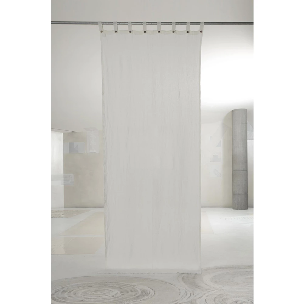 Wit dik linnen gordijn met parelmoeren knoopsluiting, handgemaakte kwaliteit made in Italy.