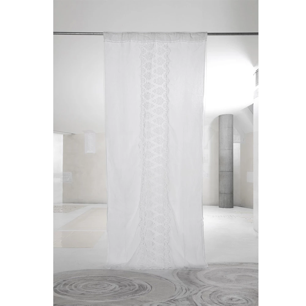 Gordijn van wit linnen en organza met verticaal centraal borduurwerk, aanleg voor roede, handgemaakte kwaliteit gemaakt in Italië.