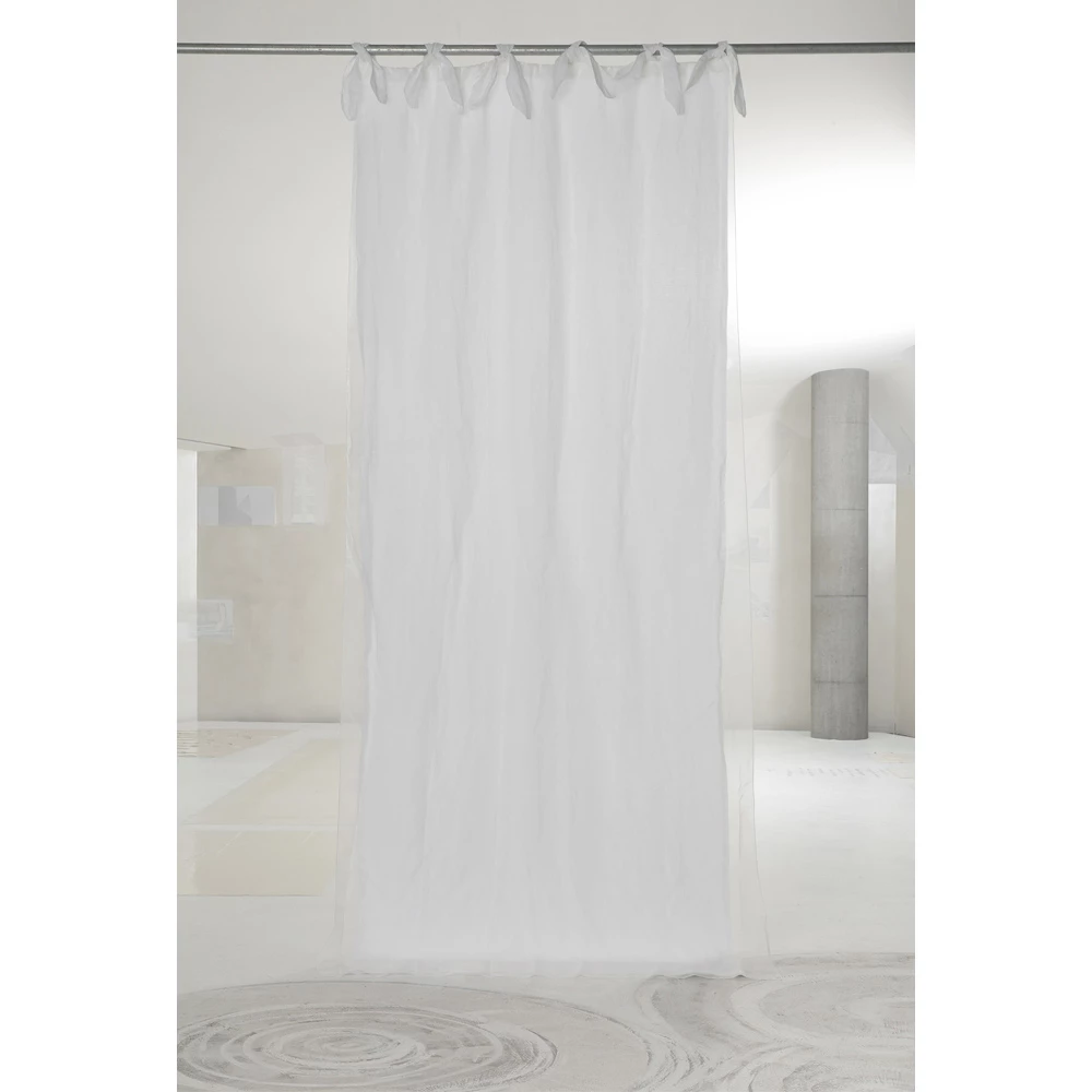 Wit linnen en organza gordijn met veters, elegant ontwerp gemaakt in Italië.