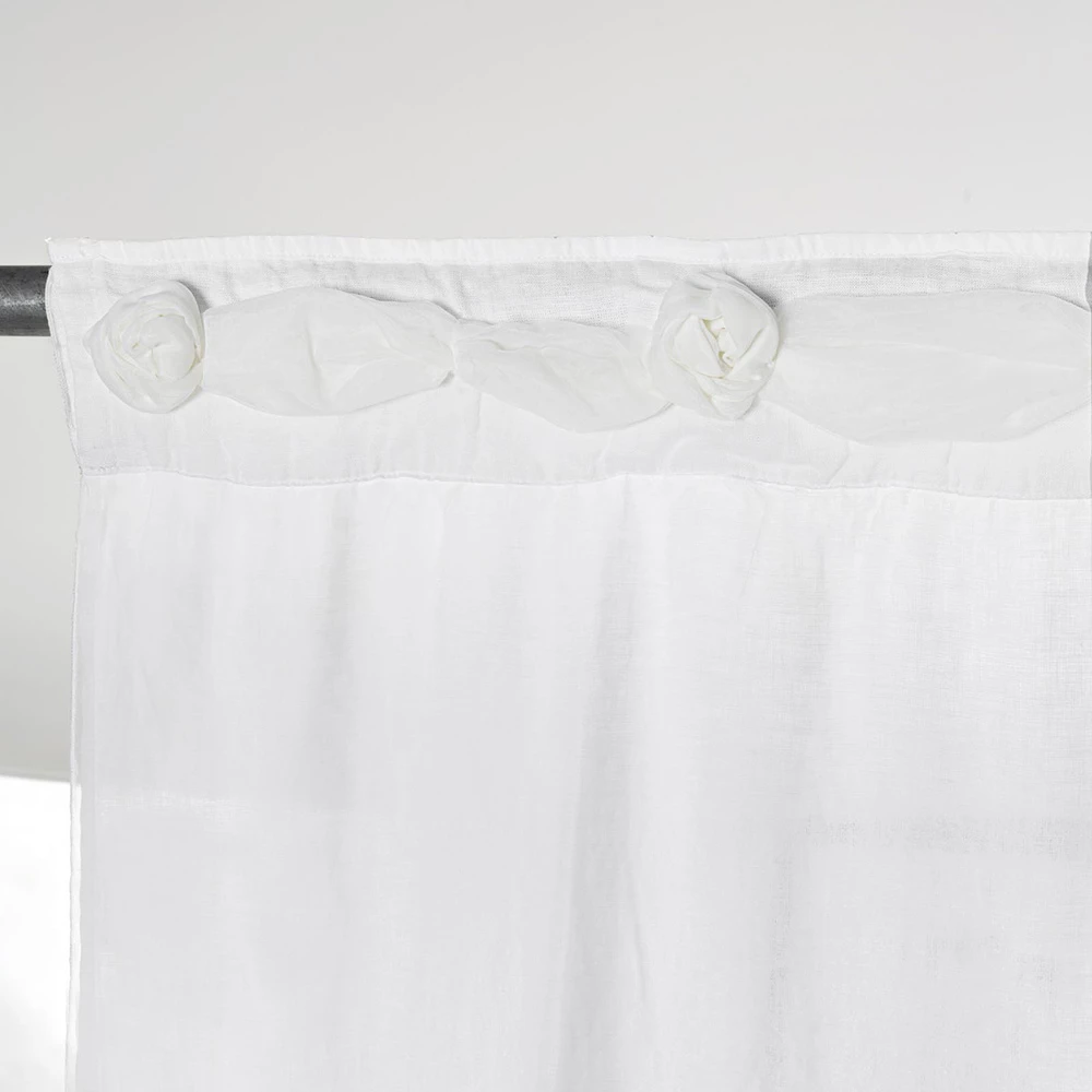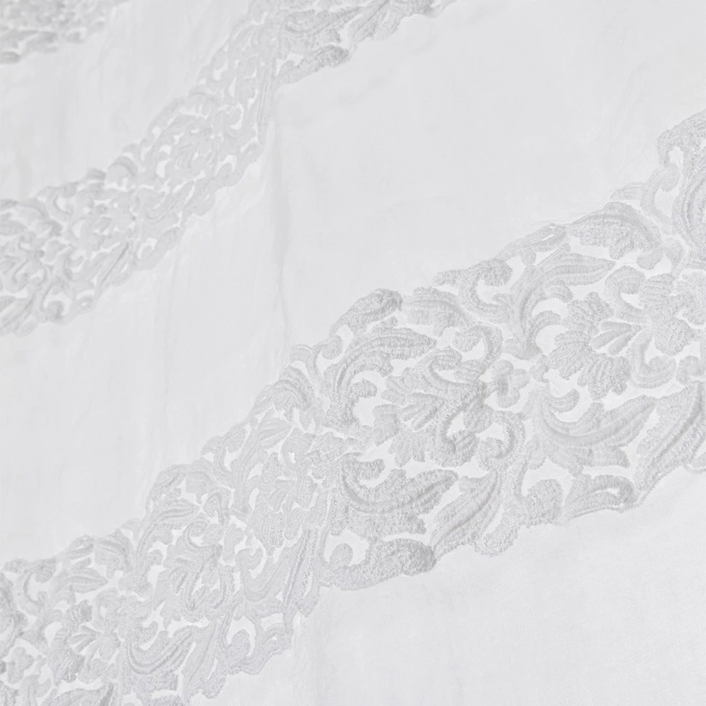 Gordijn in linnen en organza en borduurwerk, ontwerp van luxe vakmanschap gemaakt in Italië.