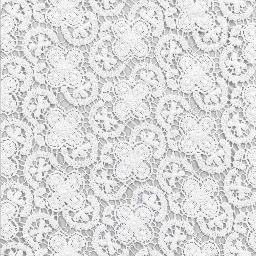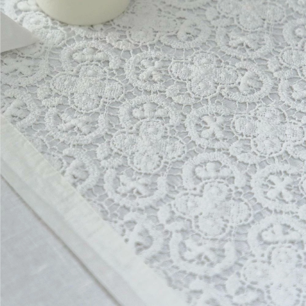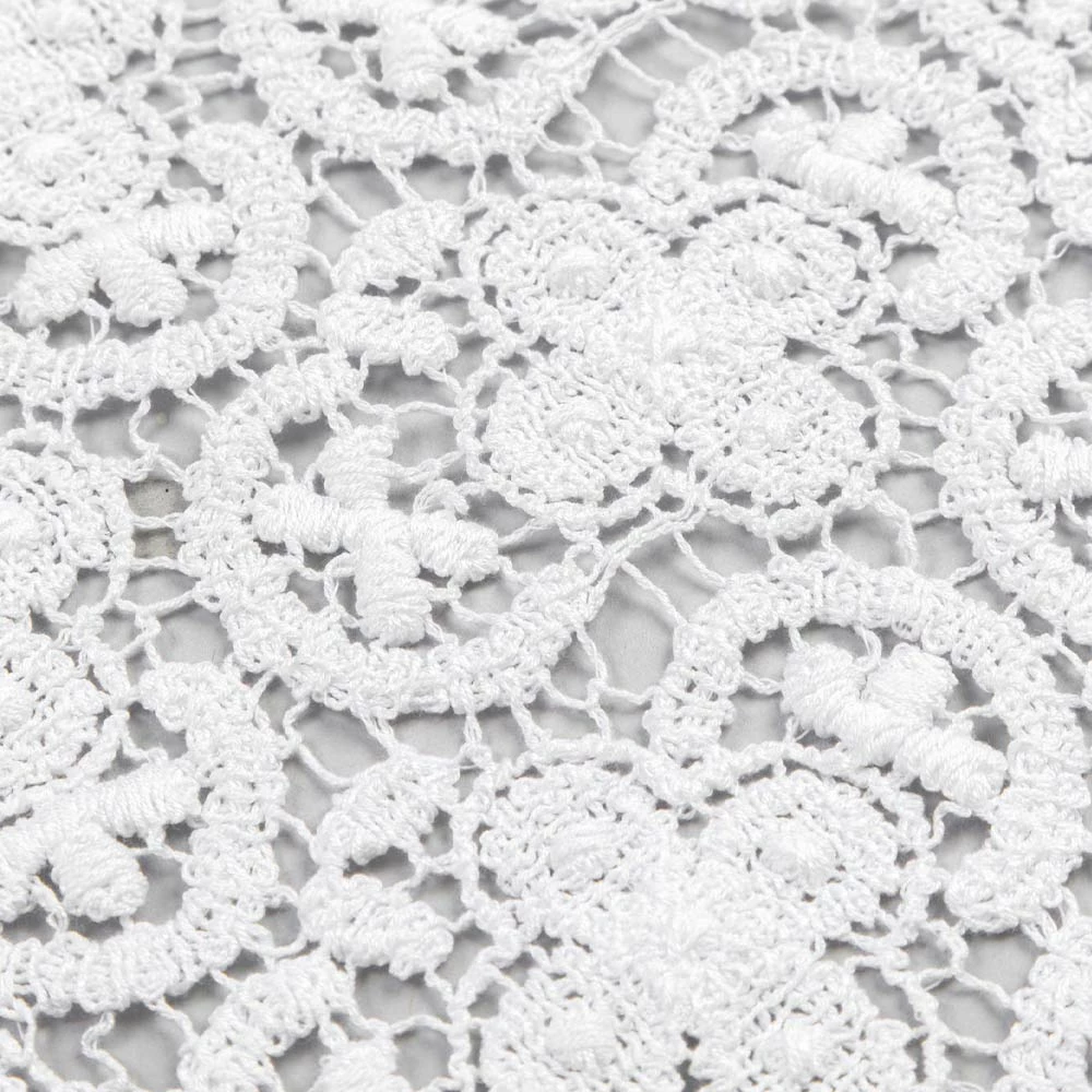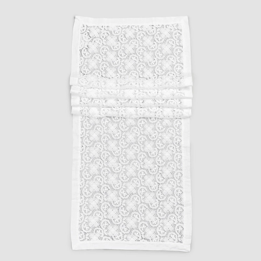 Tafelloper van gehaakt kant met een rand van een mix van linnen en katoen, luxe ontwerp gemaakt in Italië.