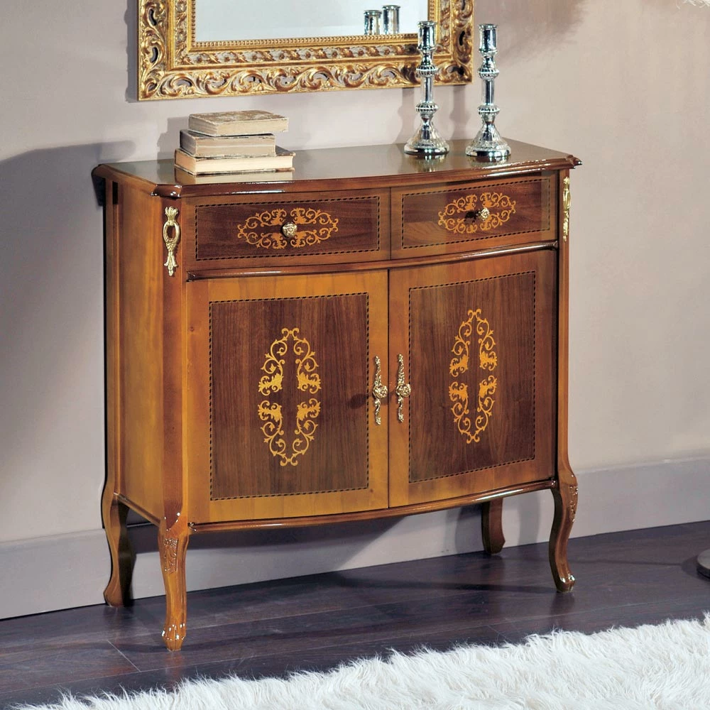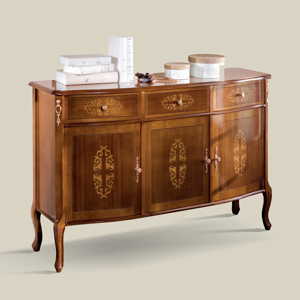 Klassieke stijl woonkamer dressoir gemaakt van hout in glanzend walnoot of wit en goud afwerking. Verkrijgbaar in de uitvoering met 2 deuren en 1 lade of 3 deuren en 3 lades. Uniek en verfijnd, het is volledig gemaakt in Italië en handgemaakt door bekwame meesters , afgewerkt met wijsheid en smaak voor elegantie. De productie wordt uitgevoerd met behulp van fijne materialen en het werk wordt met de hand uitgevoerd met de grootste zorg en professionaliteit die Made in Italy- producten onderscheidt.