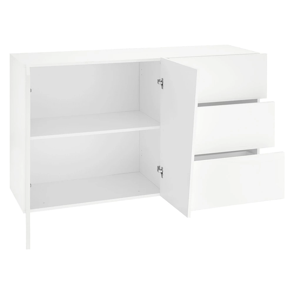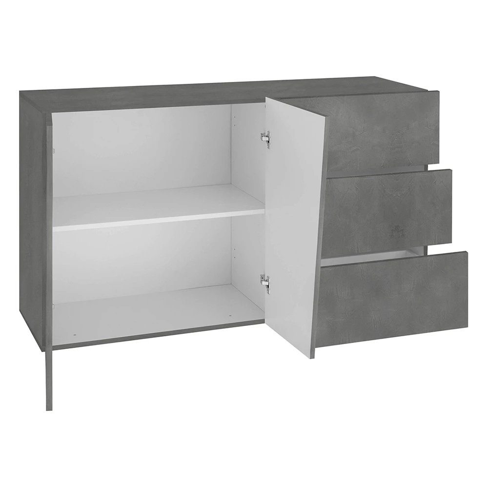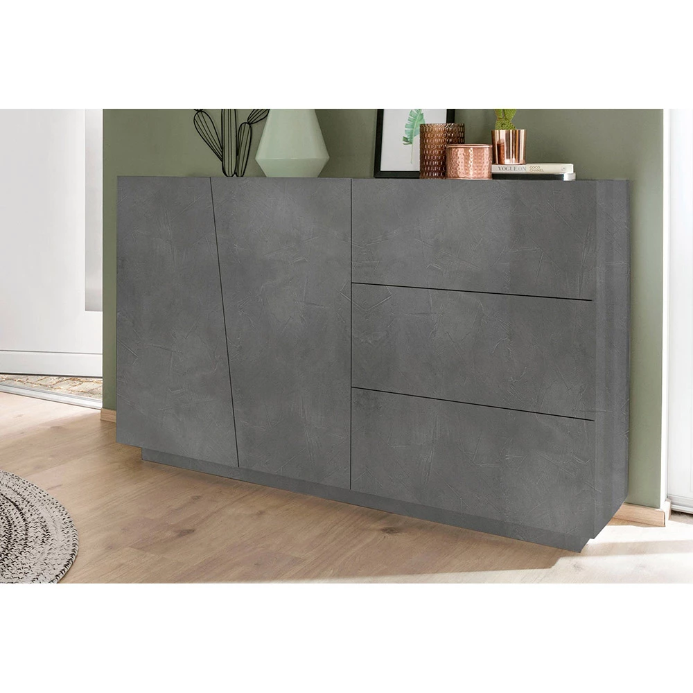 Het dressoir bestaat uit 2 draaideuren , afsluitbaar met 4 opbergvakken , en 3 lades die garant staan voor veel opbergruimte. Het is gemaakt van melamine en 100% Made in Italy . Dit product leent zich om de inrichting van elke woonkamer te voltooien dankzij de eenvoudige en elegante afwerkingen die de kamer een uniek en onvergetelijk tintje geven. Het gebruikte materiaal garandeert kwaliteit en duurzaamheid, zelfs in de loop van de tijd.