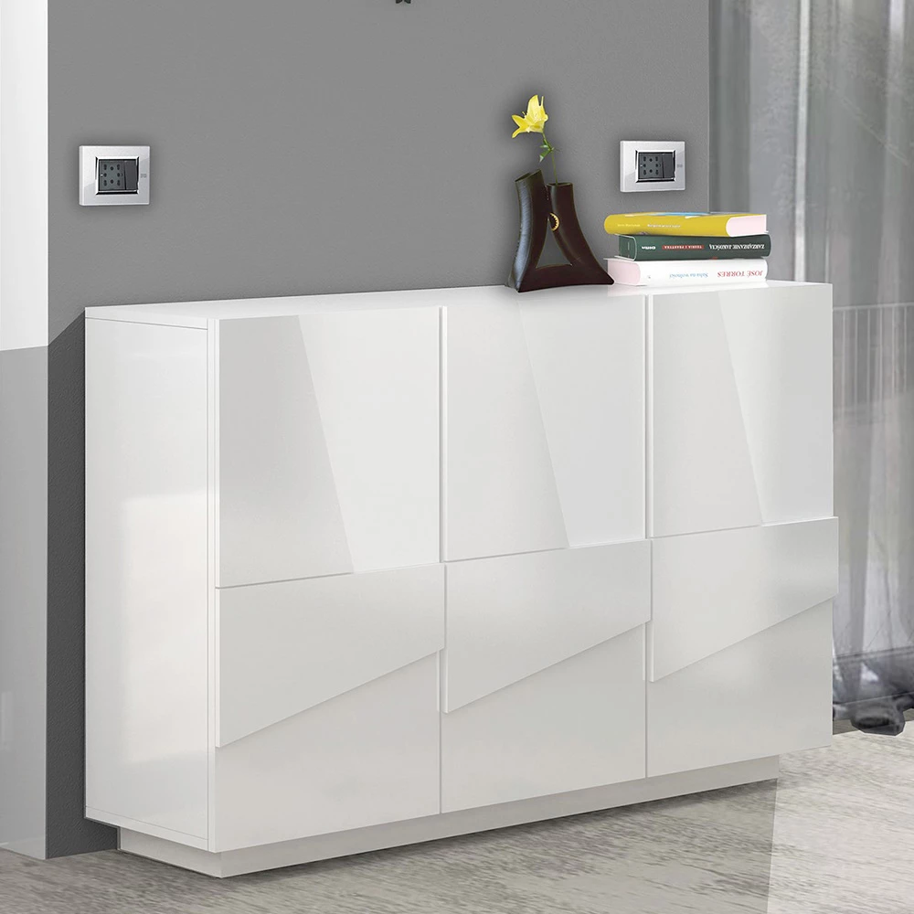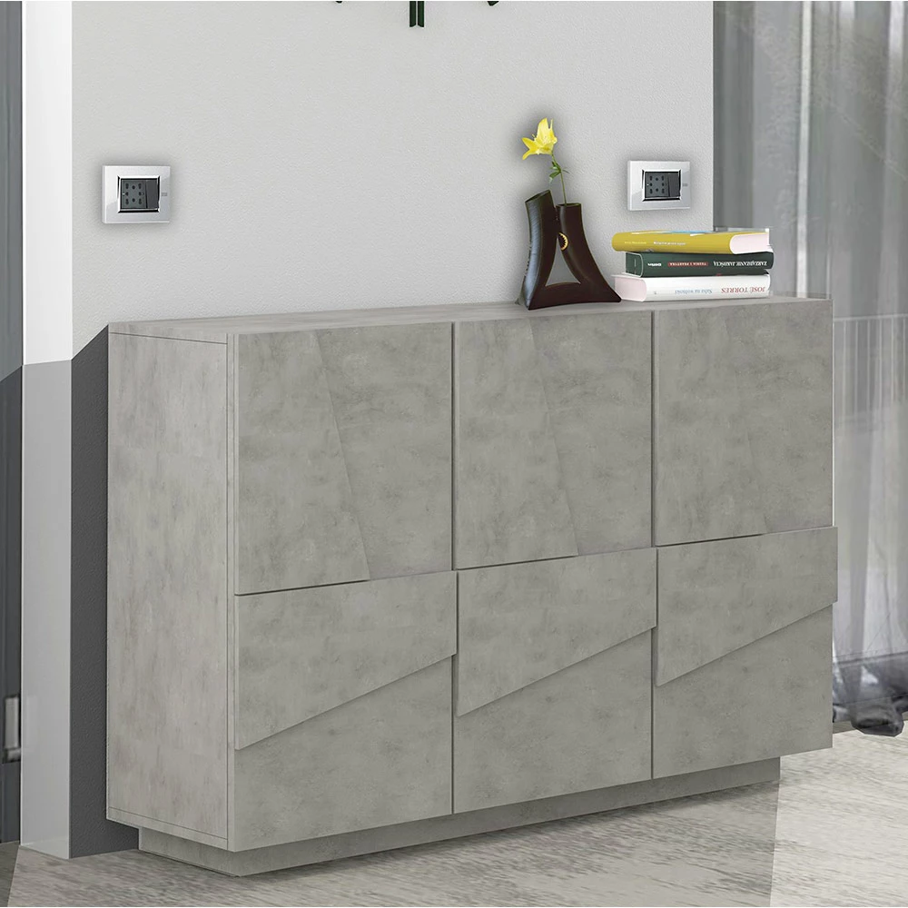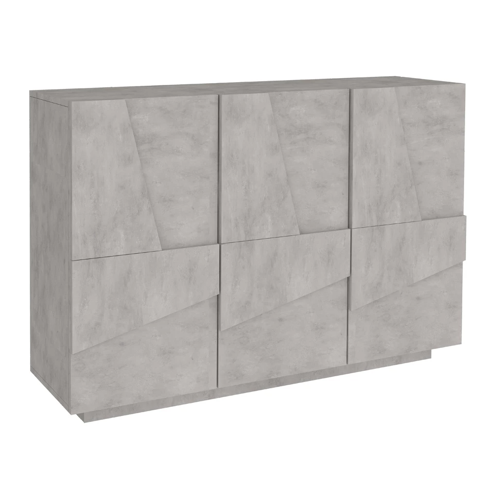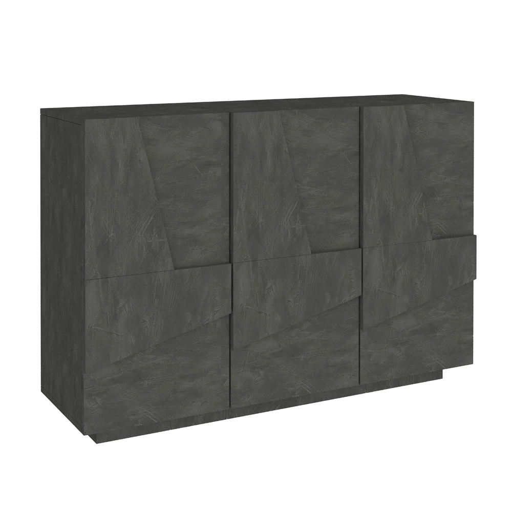 Het dressoir is samengesteld uit 3 scharnierende deuren die speciaal zijn gemaakt door het geometrische snijwerk in reliëf op het oppervlak, waardoor 4 opbergvakken worden afgesloten, die een grote opbergruimte garanderen. Het is gemaakt van melamine en 100% Made in Italy . Dit product leent zich om de inrichting van elke woonkamer te voltooien dankzij de eenvoudige en elegante afwerkingen die de kamer een uniek en onvergetelijk tintje geven. Het gebruikte materiaal garandeert kwaliteit en duurzaamheid, zelfs in de loop van de tijd.