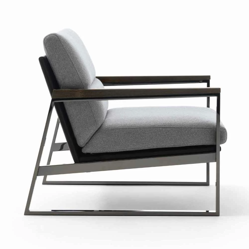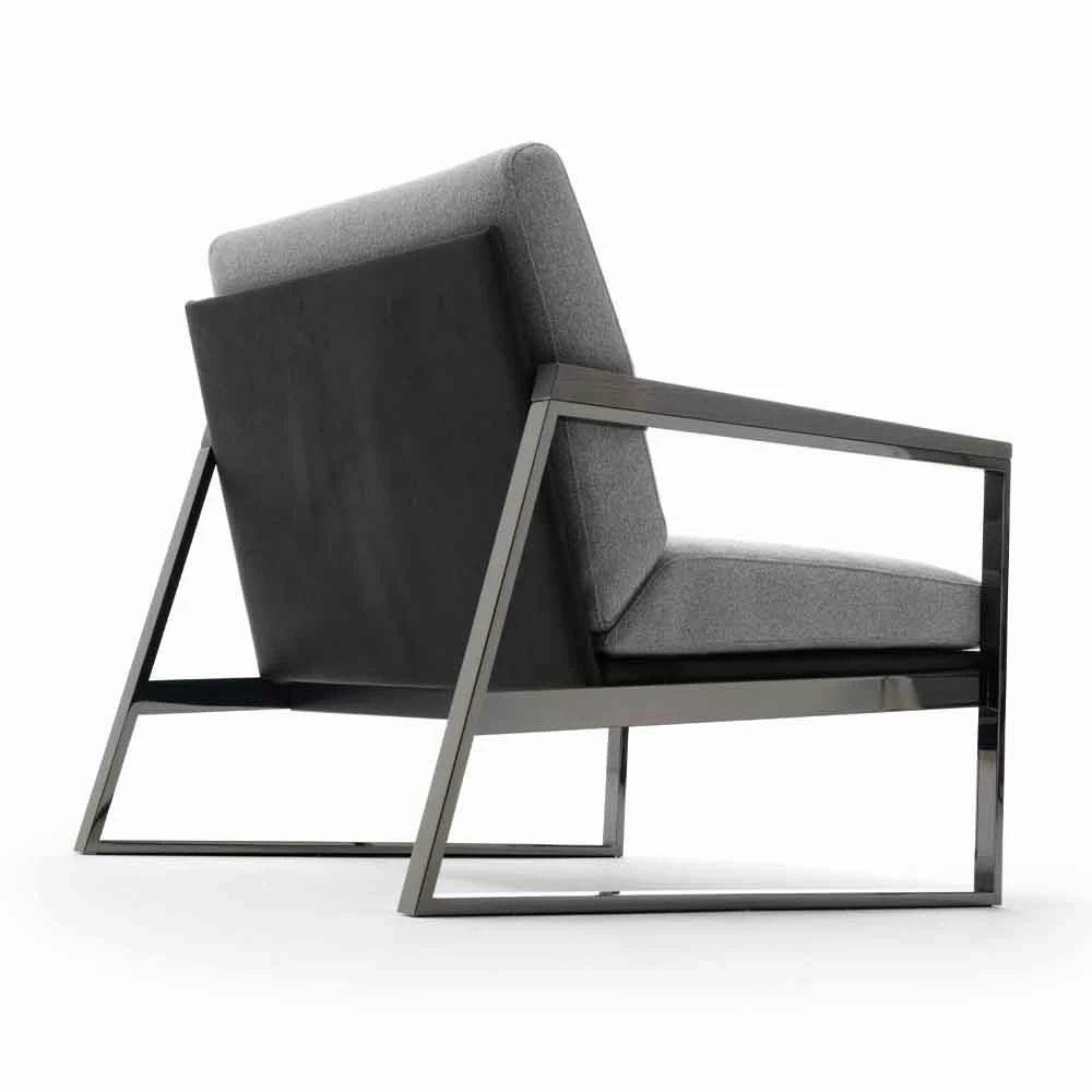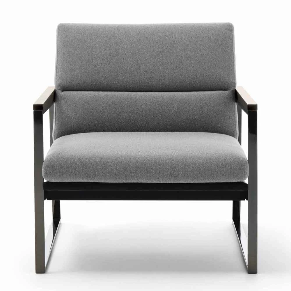 Woonkamer fauteuil met metalen structuur en zitting bekleed met stof, hoge kwaliteit Made in Italy.
