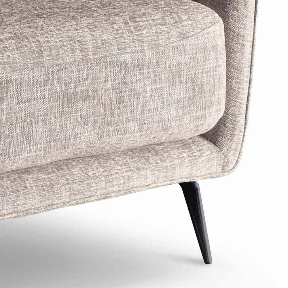 Moderne fauteuil in de woonkamer met interne structuur in meerlagige houten panelen, vervolgens opgevuld en bedekt met volledig verwijderbare stof en zwart verchroomde metalen poten.