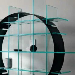 Slide Vrijstaande Cirkelvormige Boekenkast In Extra Helder Glas En Geborsteld Zwart – Marco