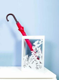 Witte Houten Paraplubak Met Modern Design Versierd Met Vlinders – Papilio