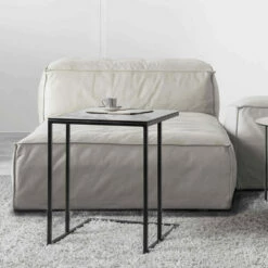 Vierkante Salontafel Van Keramisch Glas Met Metalen Voet – Anselmo