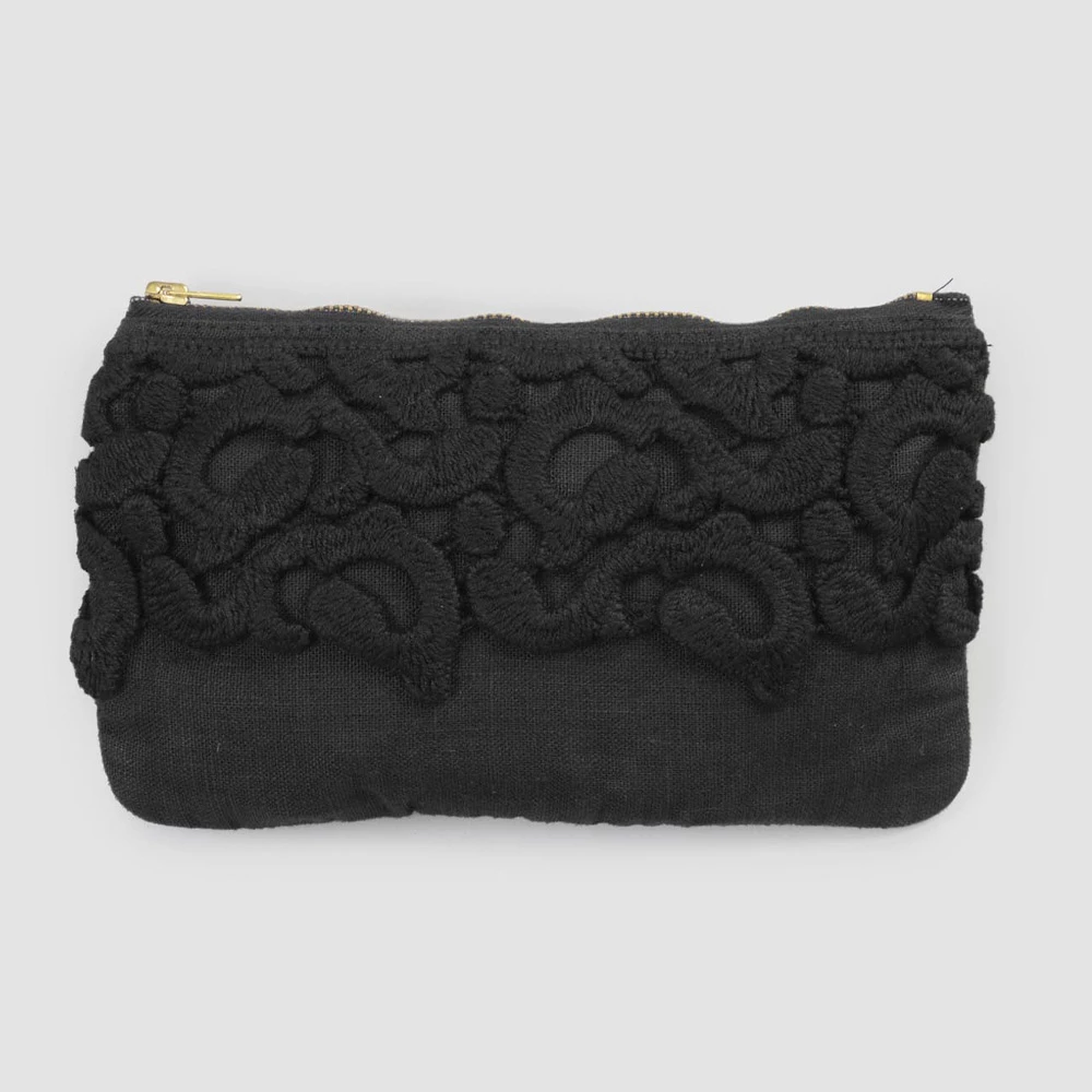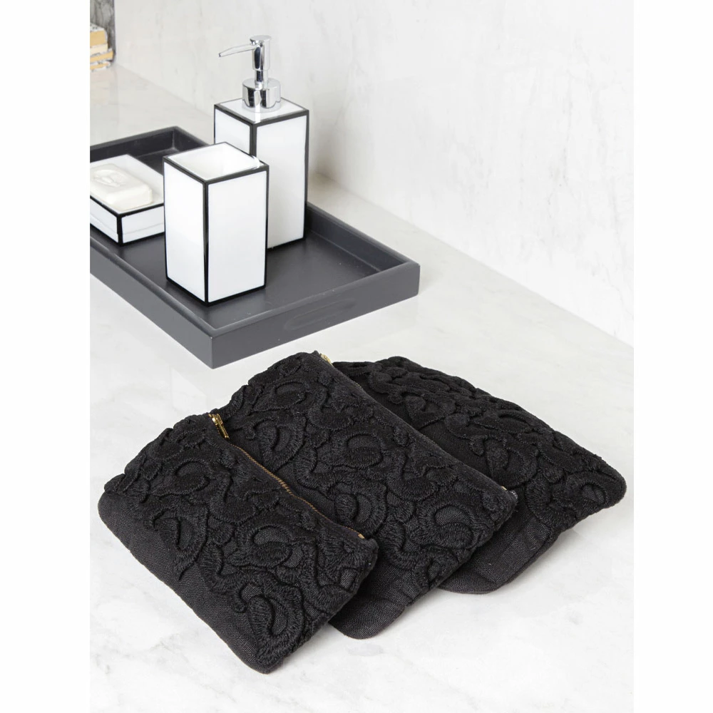 Zwart of roze linnen etui met veter en ritssluiting, 3 maten made in Italy, 2 stuks.